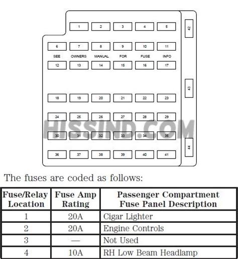 Passenger Compartment Fuse Panel Diagram.